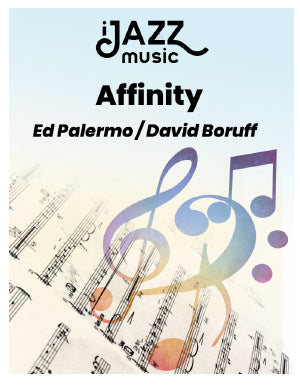 “Affinity” is a medium jazz waltz that features soprano sax (written into the lead alto book). It’s a sweet and heartfelt little ditty that gives the soprano sax plenty of room to emote. All trumpets have optional fluegelhorn parts.